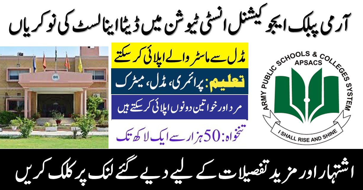 The Army Public Educational (Pak Army) has advertised the posts of Data Analyst Academic. The ad was published on January 07, 2026. Eligible individuals can apply for the most recent Data Analyst Academic vacancies at the Army Public Educational , Peshawar. This news of the latest Data Analyst Academic recruitment has been shared with Job ID 580034 on PaperPK.com.