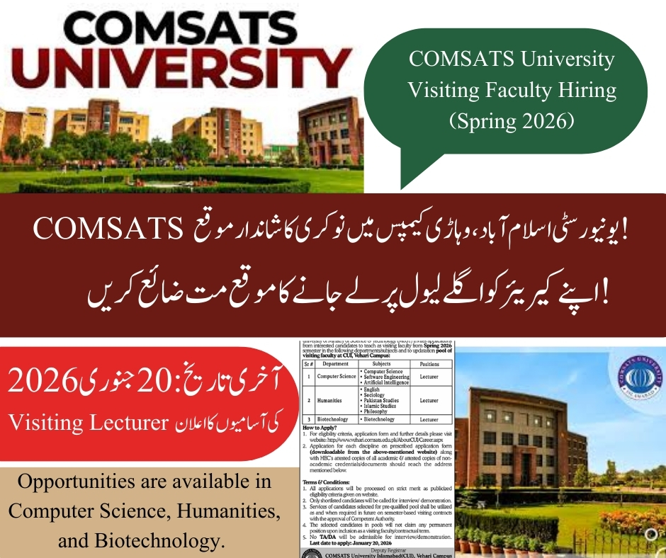 COMSATS University Islamabad (Vehari Campus) Is Hiring Visiting Lecturers COMSATS…