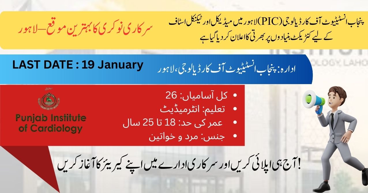 Career Opportunities at Punjab Institute of Cardiology (PIC), Lahore