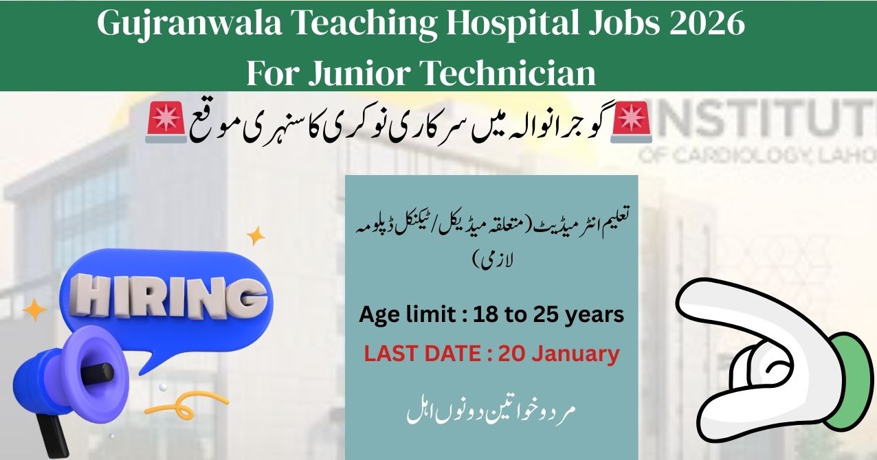 Gujranwala Teaching Hospital Jobs 2026 – Junior Technician Vacancies Announced