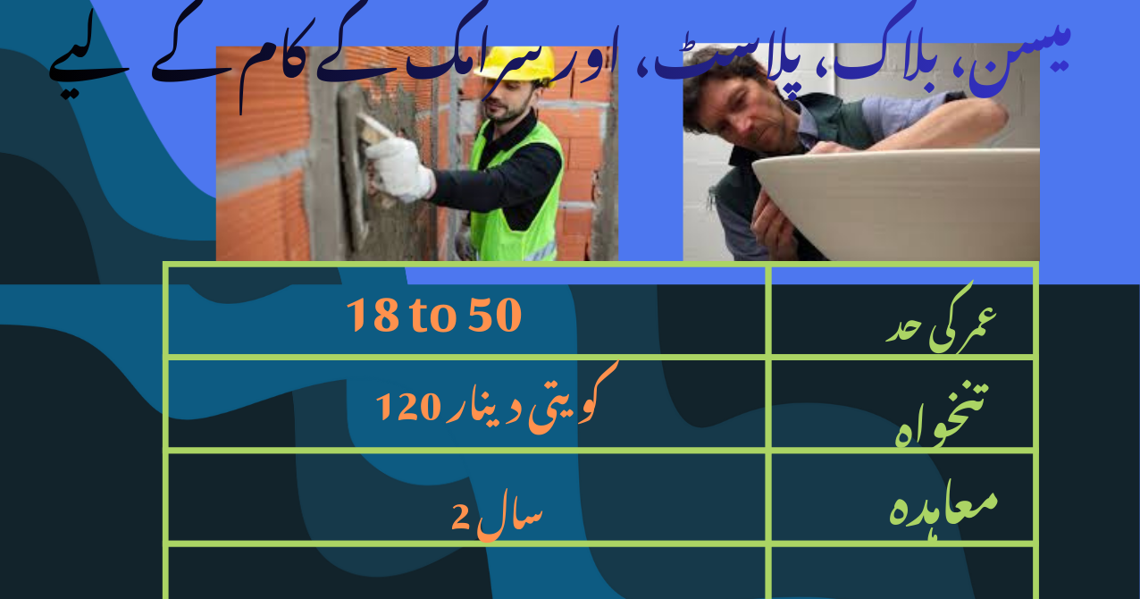 Urgent Visa: Mason, Block, Plaster & Ceramic Jobs in Kuwait