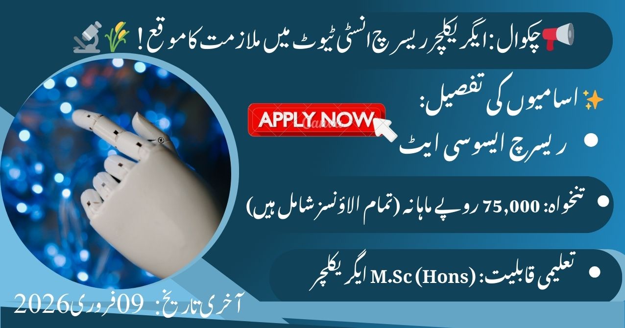 Vacancy Announcement – Research Associate (Chakwal Barani Agricultural Research Institute,…