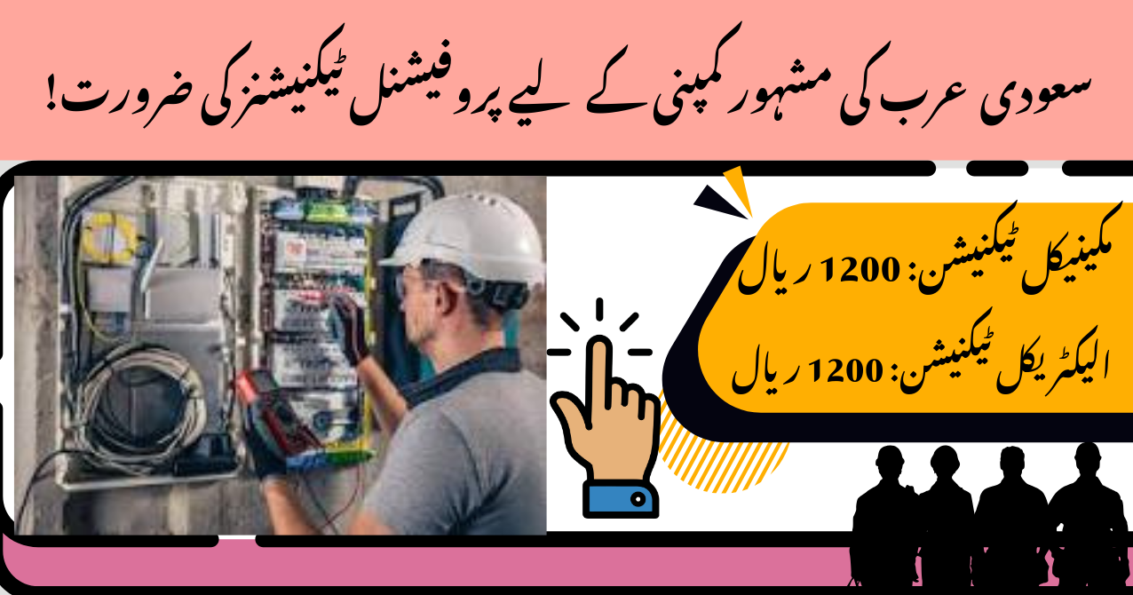 Mechanical/Electrical Technicians (5+ yrs experience, 1200 SR + Overtime). Motor…