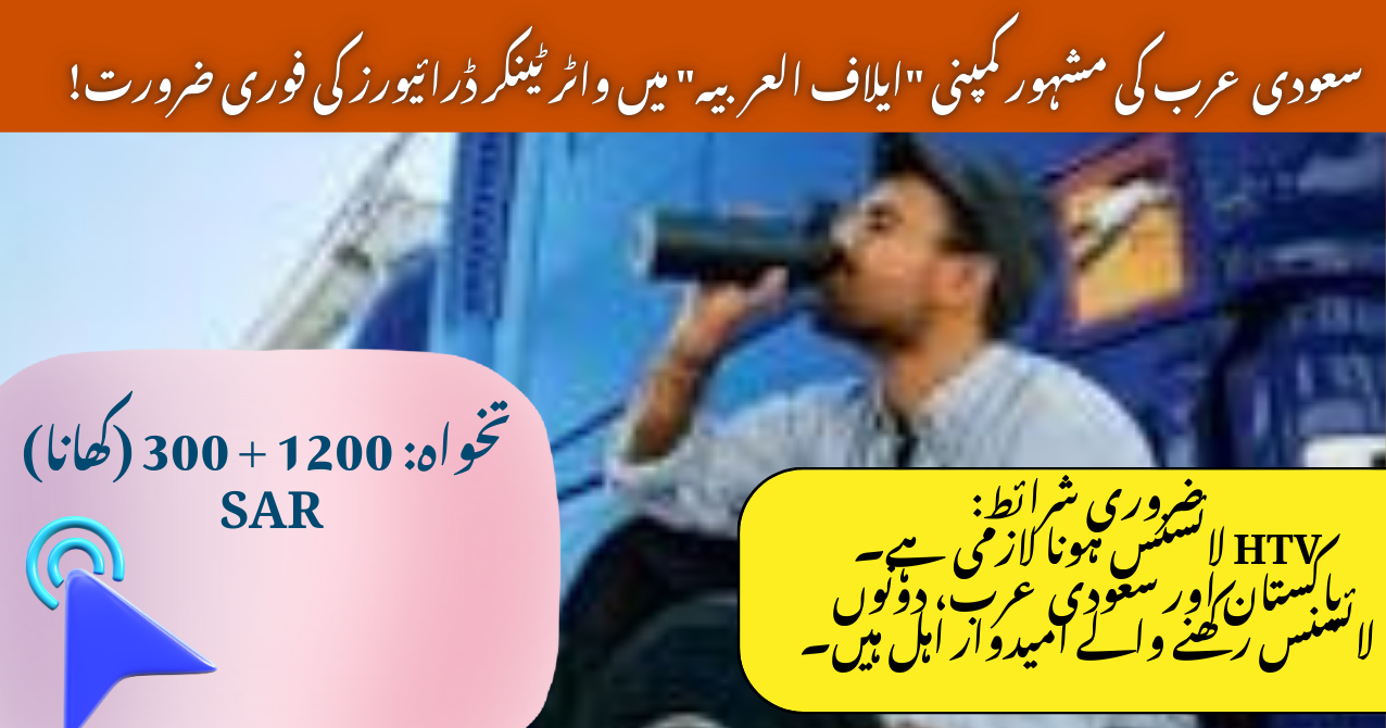 Urgent Hiring: Water Tanker Drivers Needed in Saudi Arabia – Elaf Al-Arabia