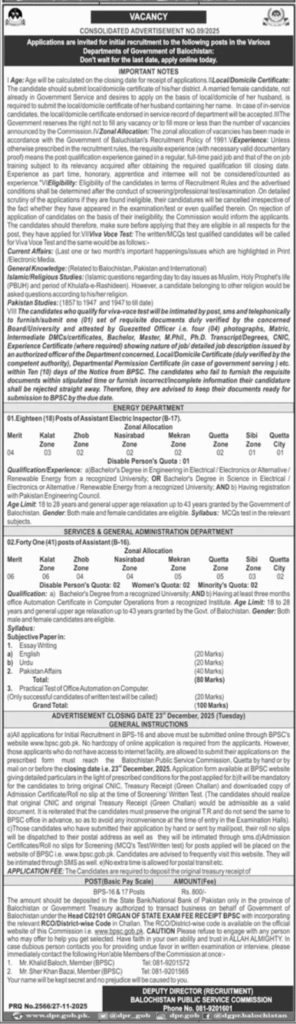 The Balochistan Public Service Commission is offering career opportunities for individuals who want to work in government positions within the province. The most recent advertisement shows different openings in various departments, such as administration, management, health, education, and accounting. These jobs include fresh candidates and also experienced ones for a long-term and secure career in public service. Regarding the upcoming BPSC Jobs 2025, applicants are advised to go through the official notice for complete information.