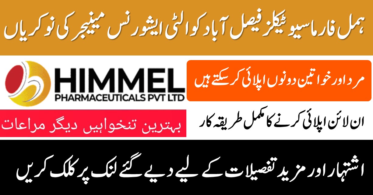 Job Opening in Himmel Pharmaceuticals Private Limited, Faisalabad, Pakistan, A…