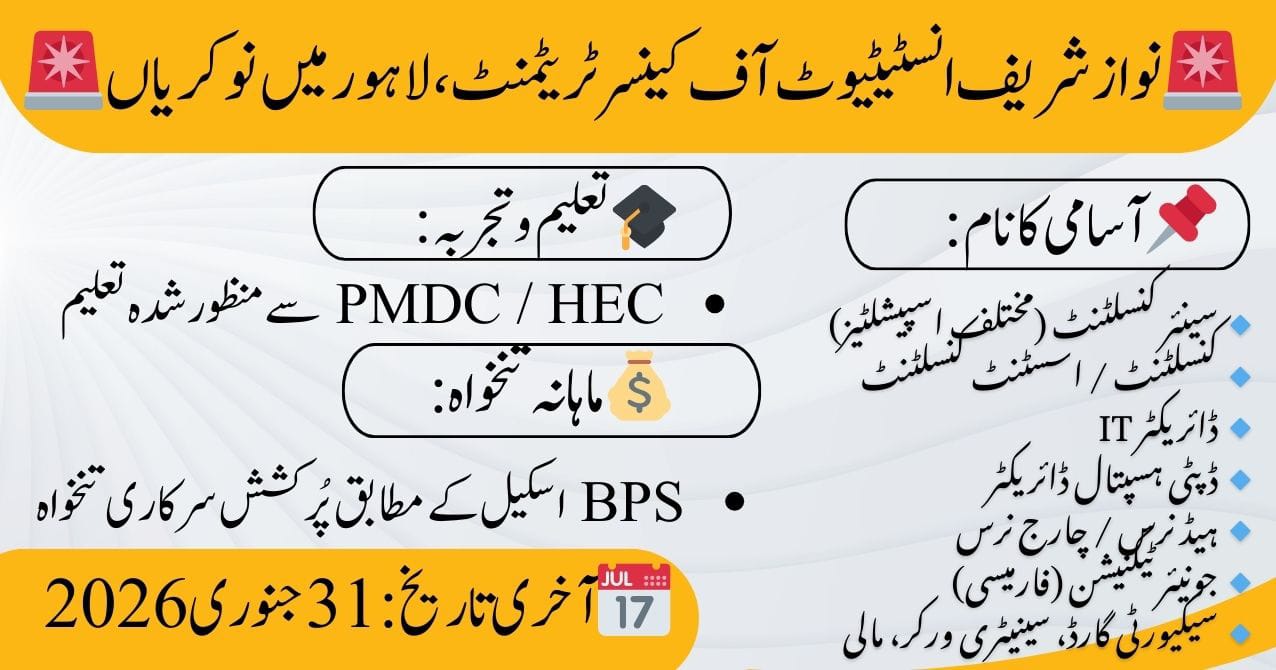 Career Opportunities at Nawaz Sharif Institute of Cancer Treatment & Research, Lahore
