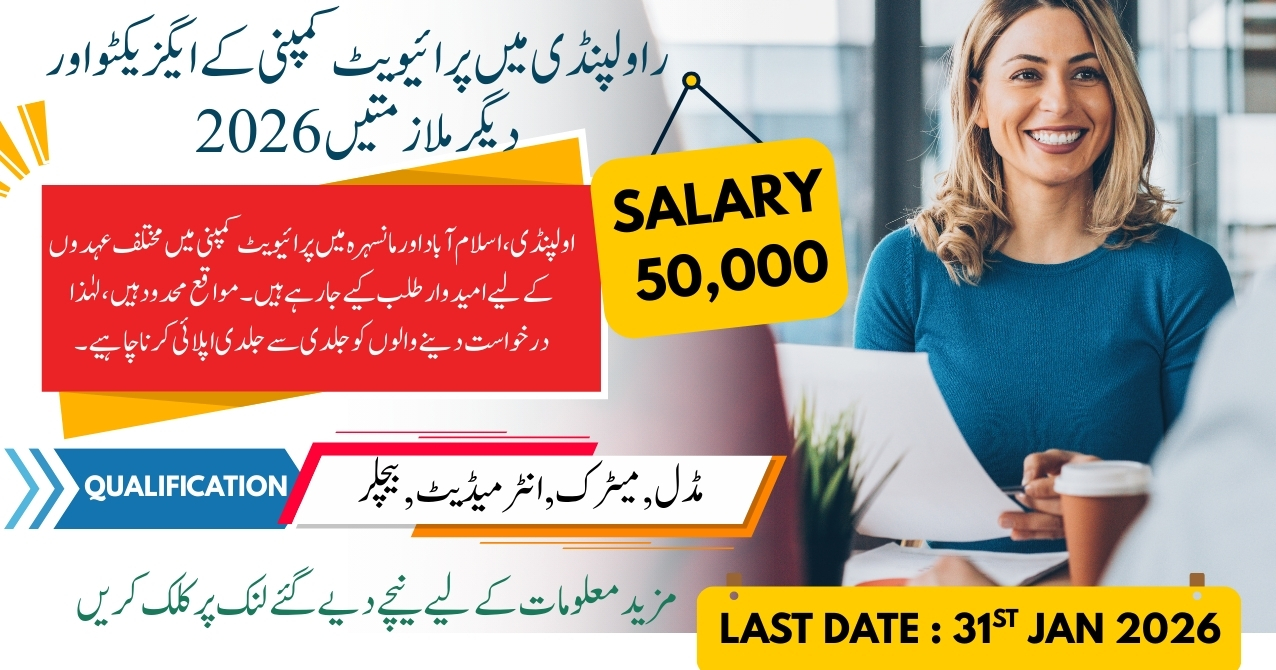 Latest Executive & Staff Vacancies at Private Company – Rawalpindi 2026