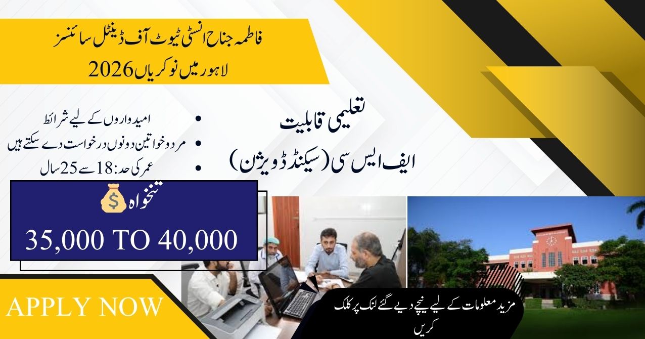 Fatima Jinnah Institute of Dental Sciences Lahore Jobs 2026 – Junior Technician Vacancies
