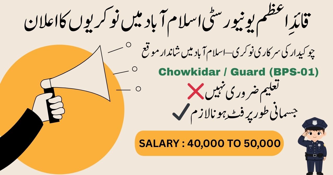 Quaid-i-Azam University (QAU), Islamabad, through the National Institute of Intelligence & Security Studies (NISS), is inviting applications for the position of Driver (BPS-1). This opportunity is ideal for responsible and experienced individuals who meet the prescribed eligibility criteria, including a valid HTV driving license and relevant driving experience. The role offers a stable government job within a reputable educational and research institution, providing a professional working environment and long-term career security. Interested candidates are encouraged to apply through the proper channel before the closing date.