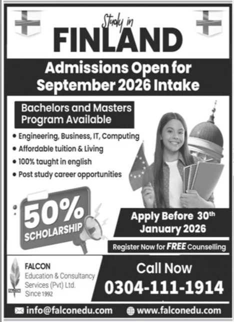 Falcon Educational and Consultancy Services, Lahore, Punjab, Pakistan, has announced Diploma Admissions for the year 2026. Eligible candidates are free to apply for a diploma in Science, following the policy of admissions to the respective government institute, 2026. Candidates are required to send their applications prior to the date mentioned in the advertisement placed in the newspaper. Check out the advertisement placed in the newspaper for further details about the criteria and process to be followed for applications.