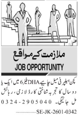 Latest kitchen helper (Female) jobs in Karachi for 2026 have become available to start a new career as kitchen helper positions in Karachi, Sindh, Pakistan, through classified advertisements. Candidates interested in kitchen helper positions have the opportunity to apply for the latest house jobs through this online application for kitchen helper positions. This latest opportunity will provide candidates with the chance to start their new career as kitchen helpers as this advertisement for kitchen helper positions appeared on 22 January 2026 in the Jang newspaper. The latest application for this kitchen helper position will remain open till 07 February 2026.