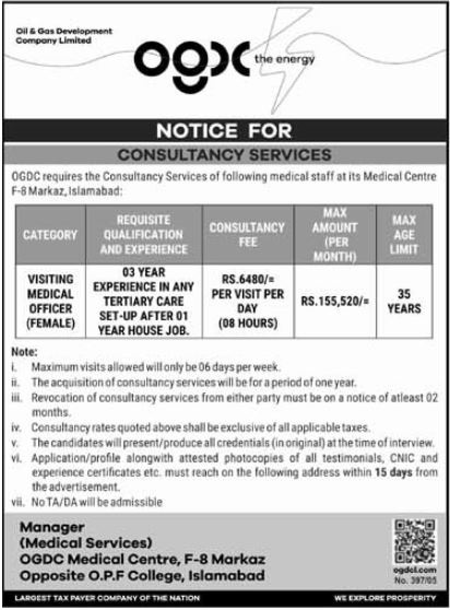 Oil & Gas Development Company Limited, OGDCL has given an advertisement in the Mashriq Newspaper dated 17th January 2026 for the following vacant position required to be filled. Job Location: F-8, Islamabad, Pakistan: