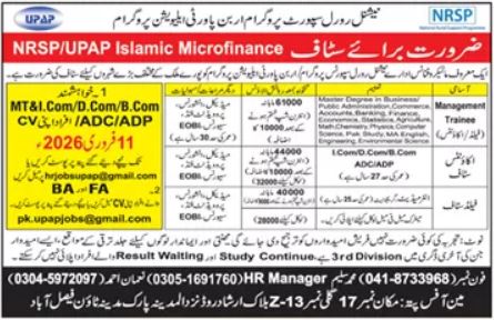 The National Rural Support Programme (NRSP) has recently announced its latest job opportunities for 2026 in Faisalabad, Punjab, Pakistan. These government management jobs are offering vacancies for Management Trainees, Account Staff, and Field Staff. Job seekers interested in beginning or advancing their careers can apply for these newly announced job opportunities. The job posting was advertised on 26 January 2026 in the Dunya Newspaper, and the final date for application submission is 11 February 2026.