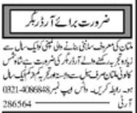 A well-established marketing company in Multan is hiring motivated and energetic individuals for the positions of Order Booker and Sales Staff. This opportunity is ideal for candidates who have strong communication skills and a passion for sales and fieldwork. Applicants with Matric or Intermediate education are encouraged to apply. These are full-time positions offering a supportive work environment and career growth. Interested candidates should apply before January 31, 2026, and take the next step toward a stable and rewarding career.