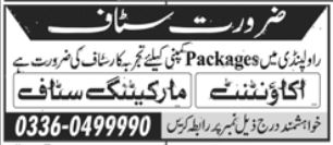 Packages Company Rawalpindi has announced exciting job openings for Accountant and Marketing Staff positions for 2026. This is a great opportunity for motivated and career-focused individuals who want to work with a well-known private organization in Rawalpindi. Candidates holding Intermediate, Bachelor’s, or BS degrees are encouraged to apply. These are full-time positions offering a professional work environment and career growth. Interested applicants should submit their applications before the closing date of 24 February 2026, as applications received after the deadline will not be considered.
