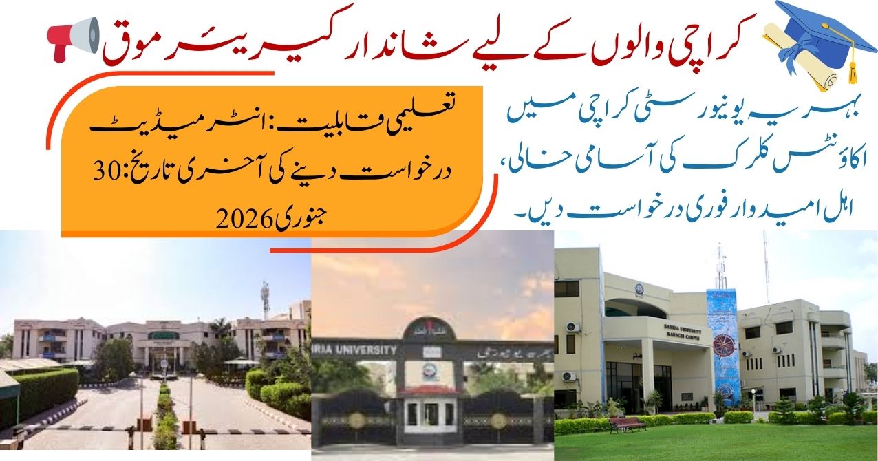 Career Opportunity at Bahria University Karachi – Accounts Clerk Jobs 2026