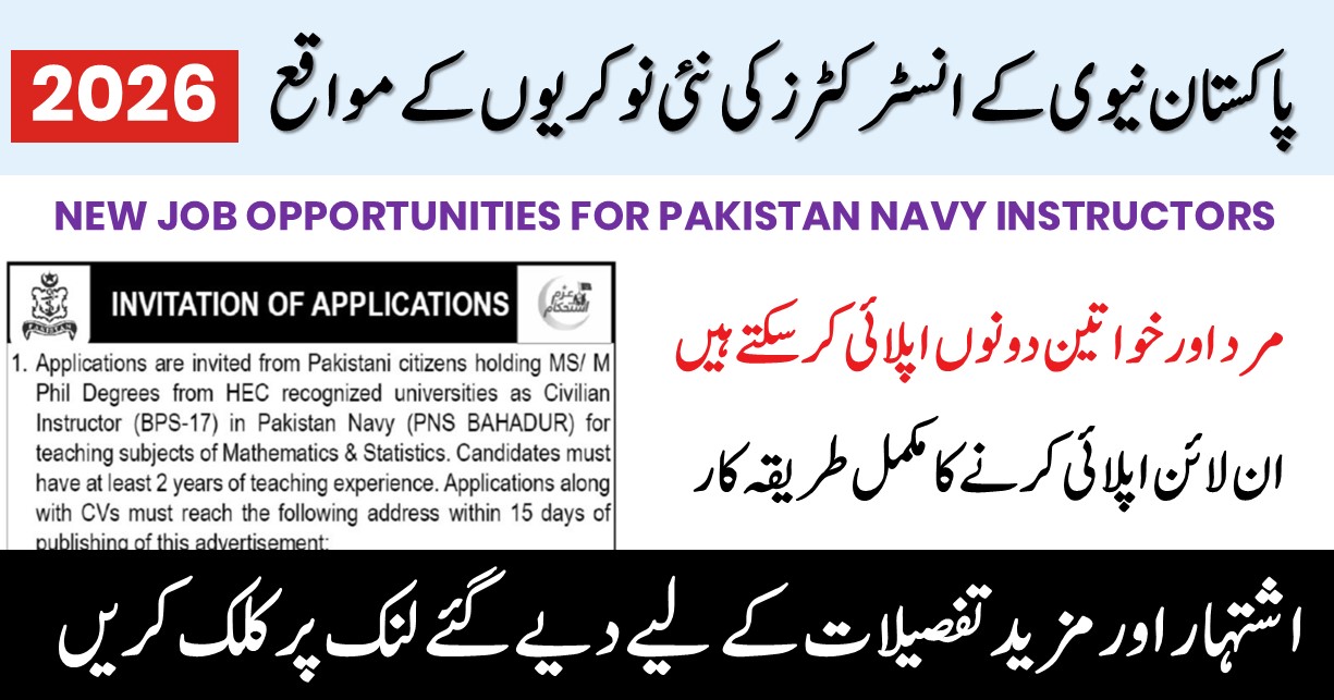 Recent Jobs at Pakistan Navy Hiring Instructors, Karachi 2026 The…