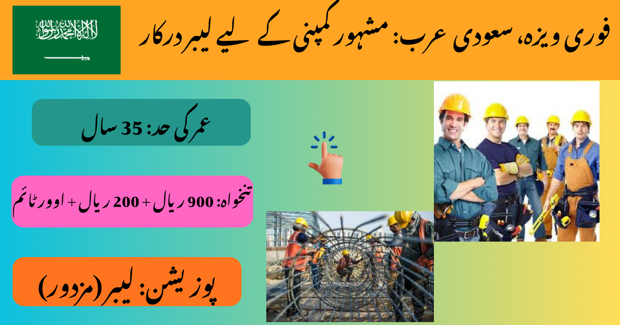 Urgent Visa Saudi Laborers Required for a Famous Company, Salary 900+200 Riyals + Overtime