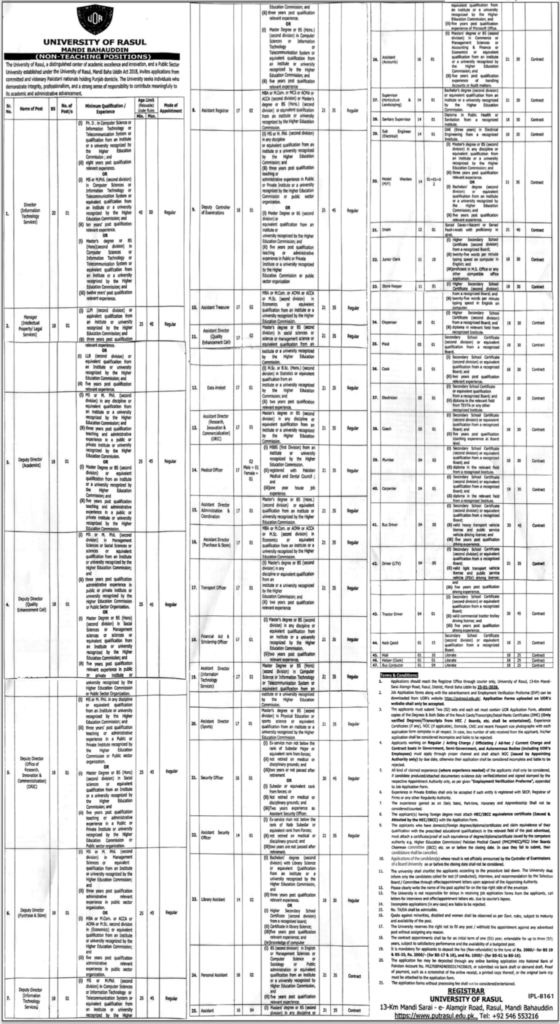 Notification Regarding Various Jobs in University of Rasul Mandi Bahauddin in 2026