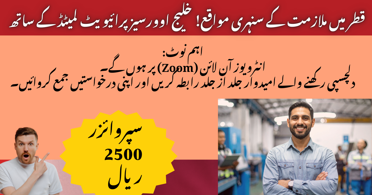English Translation: Job opportunities in Qatar! There is a great opportunity to work abroad with Khaleej Overseas Pvt Ltd for a range of jobs. Recruitment in Qatar The interviews for these positions will take place through Zoom meetings shortly. If you have the necessary qualifications for these jobs, apply for them now!